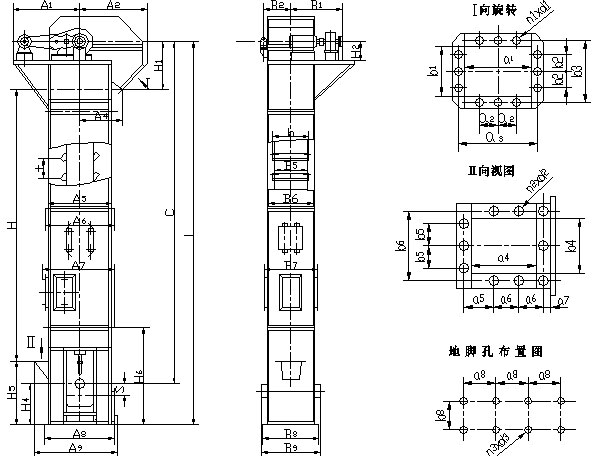7.下部设有料位计和速度传感器,对提升机的运转情况进行监控。